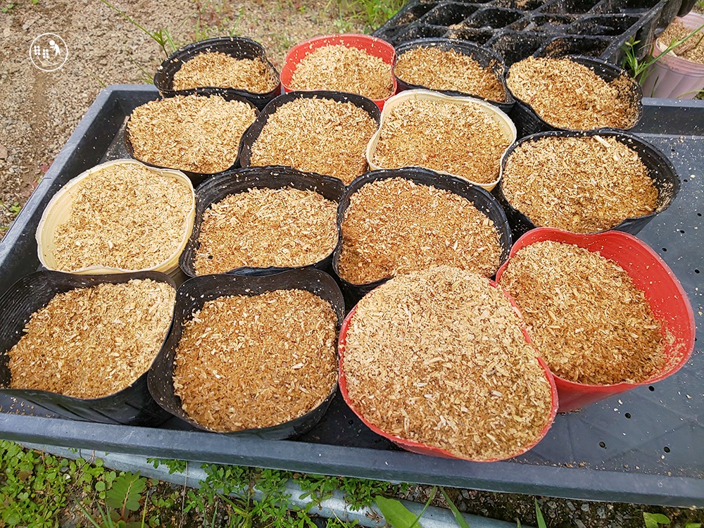 必ず!種を蒔く前に「すりつぶしもみ殻」に水をたっぷりと水を含ませておいてください。